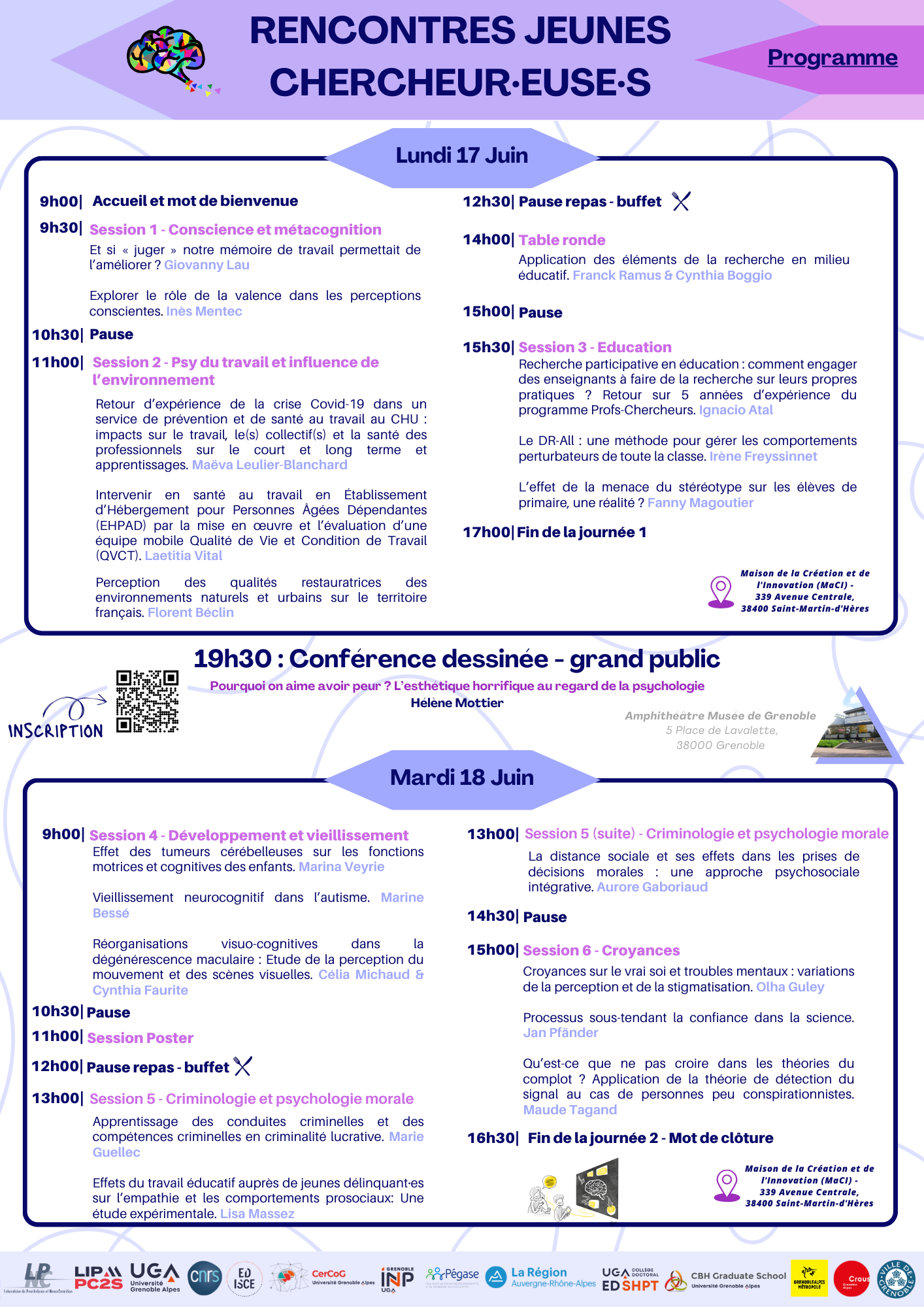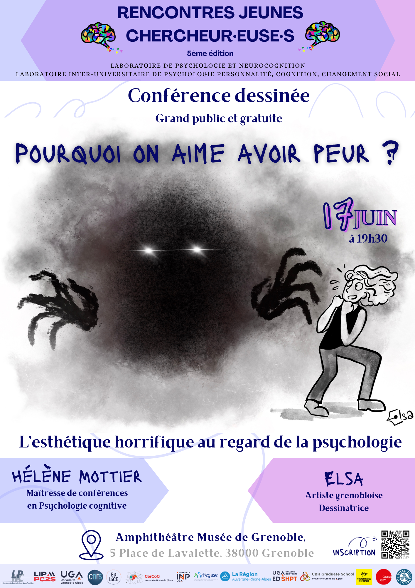 Dans le cadre de la 5e édition des Rencontres jeunes chercheurs et chercheuses, les doctorants et doctorantes du Laboratoire de Psychologie et Neurocognition (LPNC - CNRS/UGA/USMB) et du Laboratoire Interuniversitaire de Psychologie (LIP/PC2S - UGA/USMB) organisent une conférence grand public sur la peur.